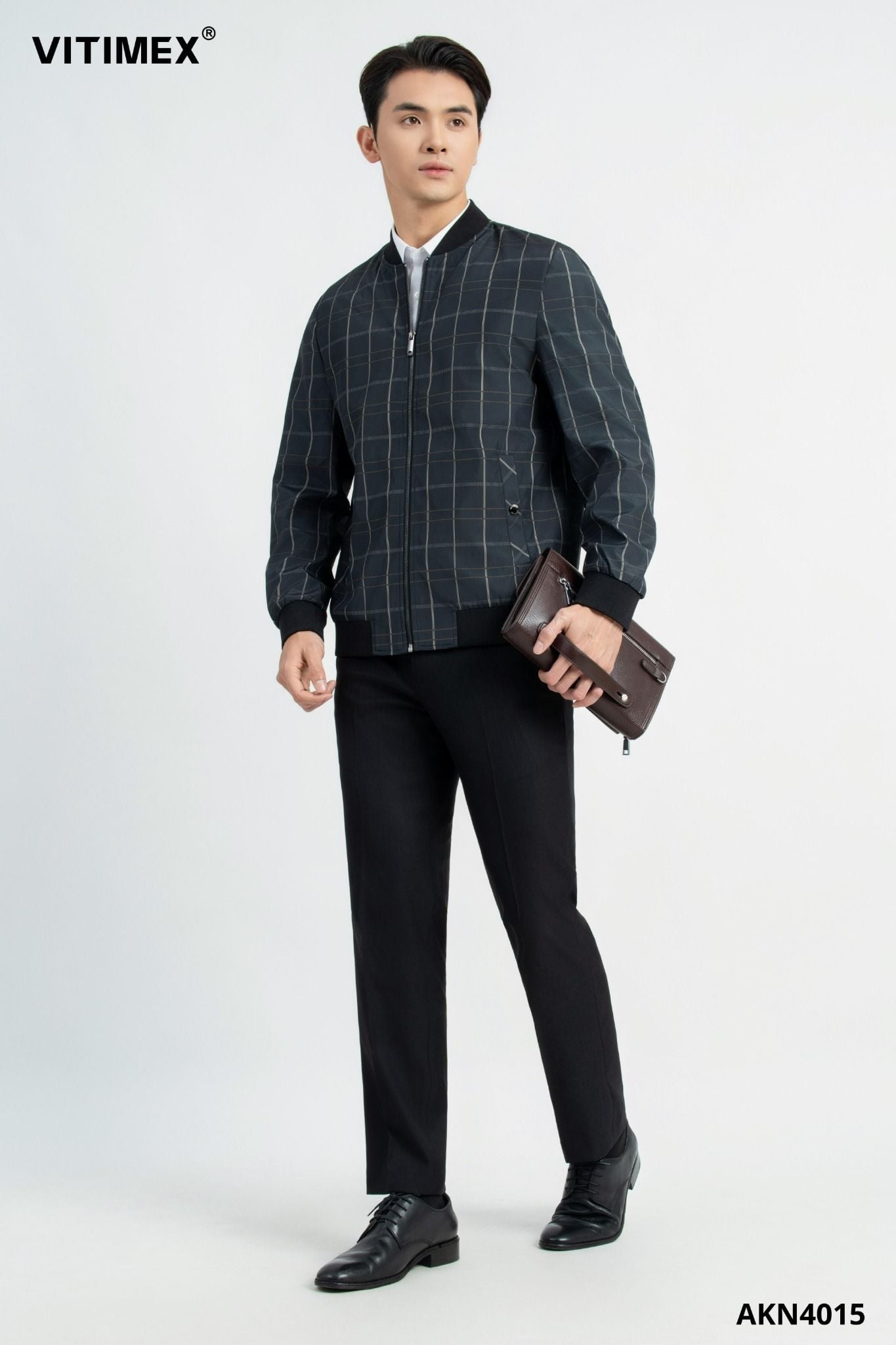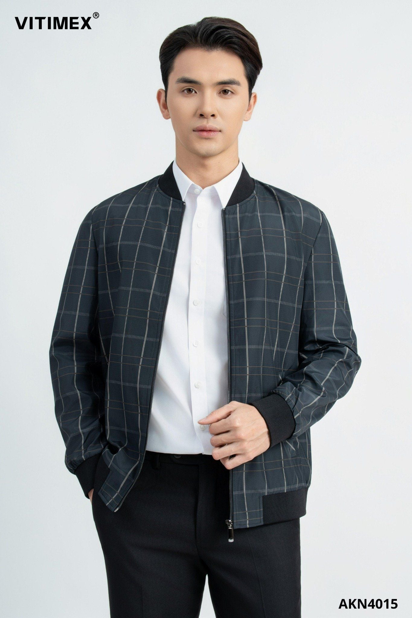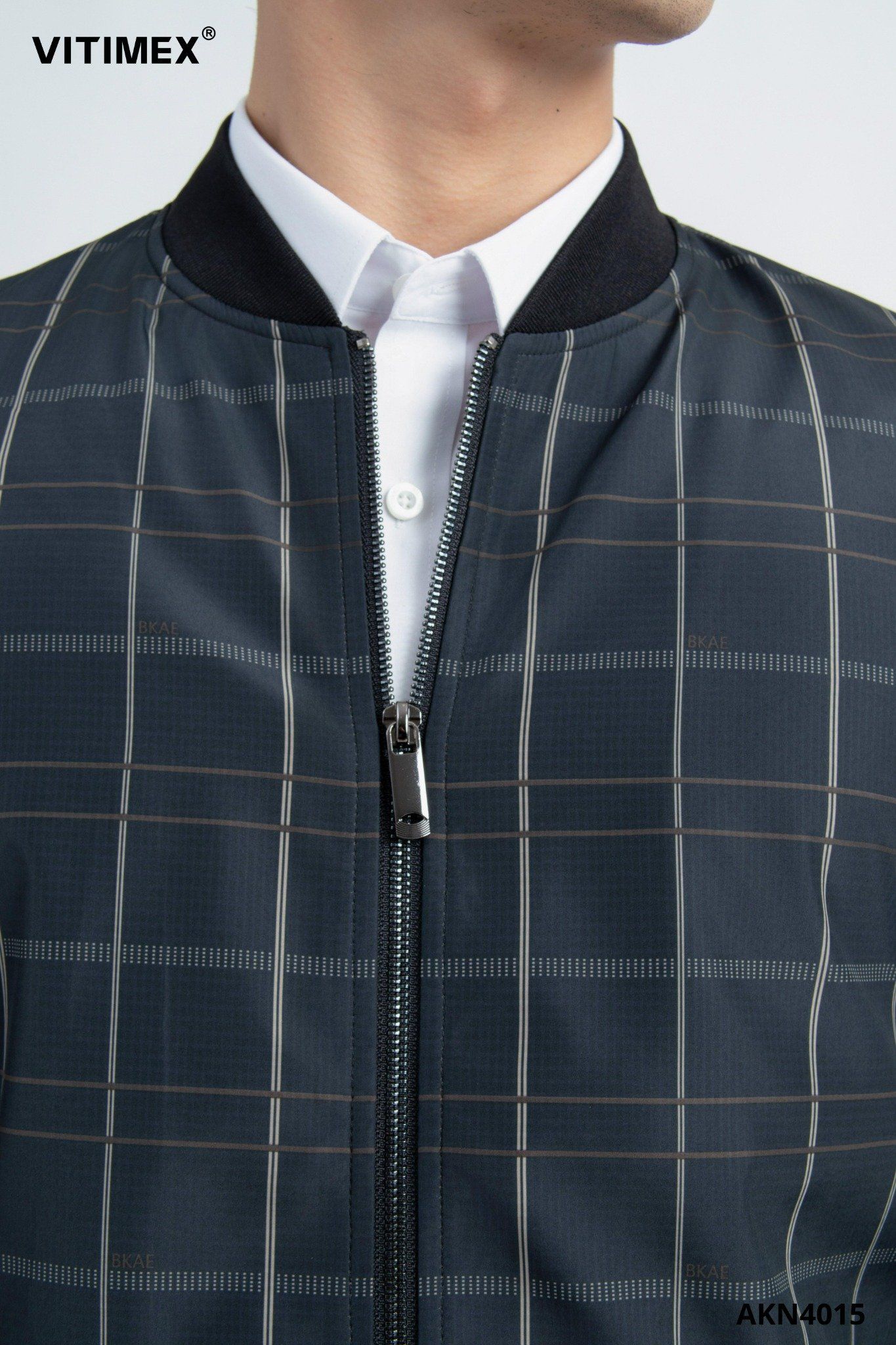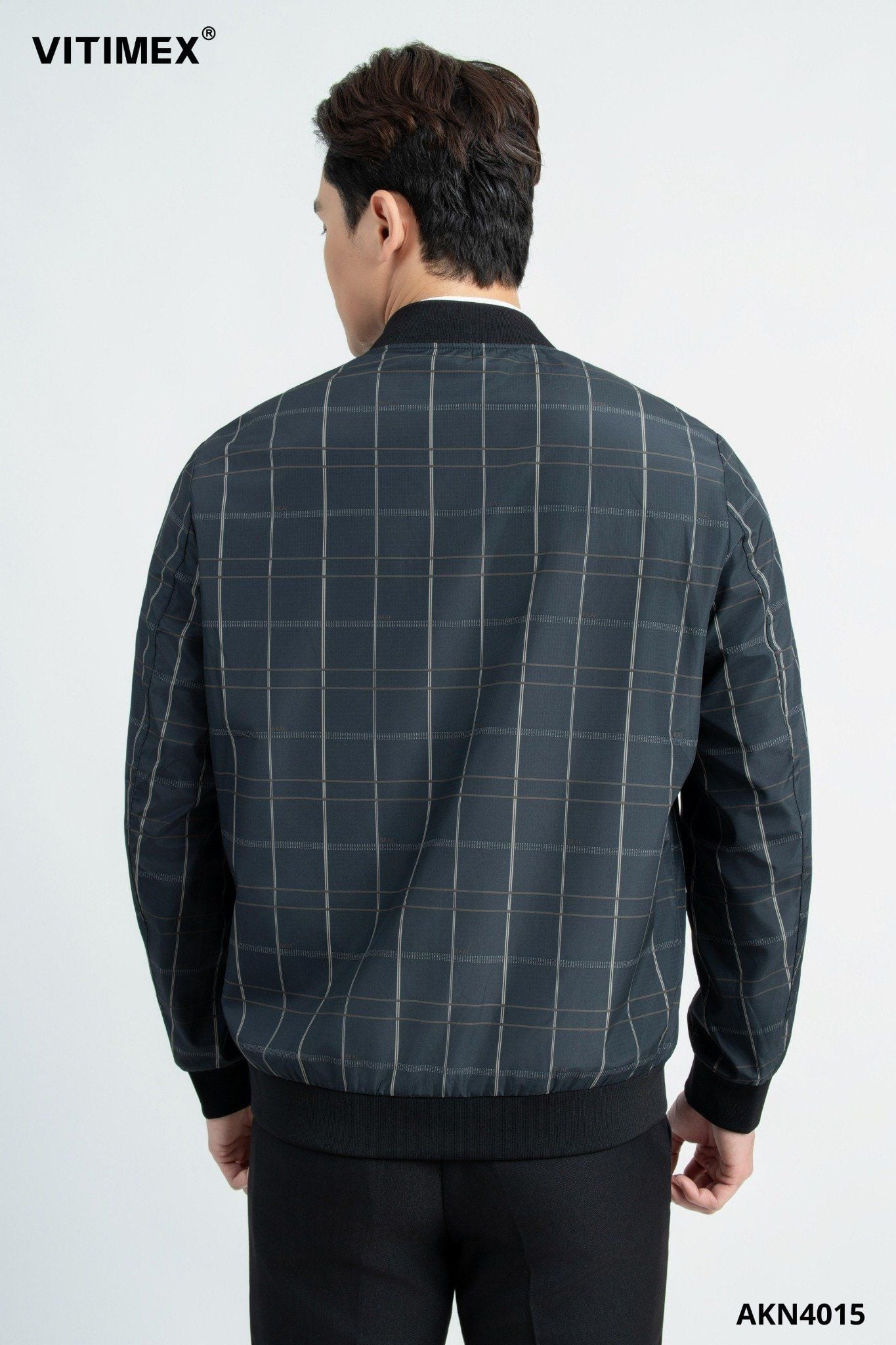ÁO KHOÁC NAM BOMBER VITIMEX DÁNG RỘNG REGULAR KẺ AKN 4015