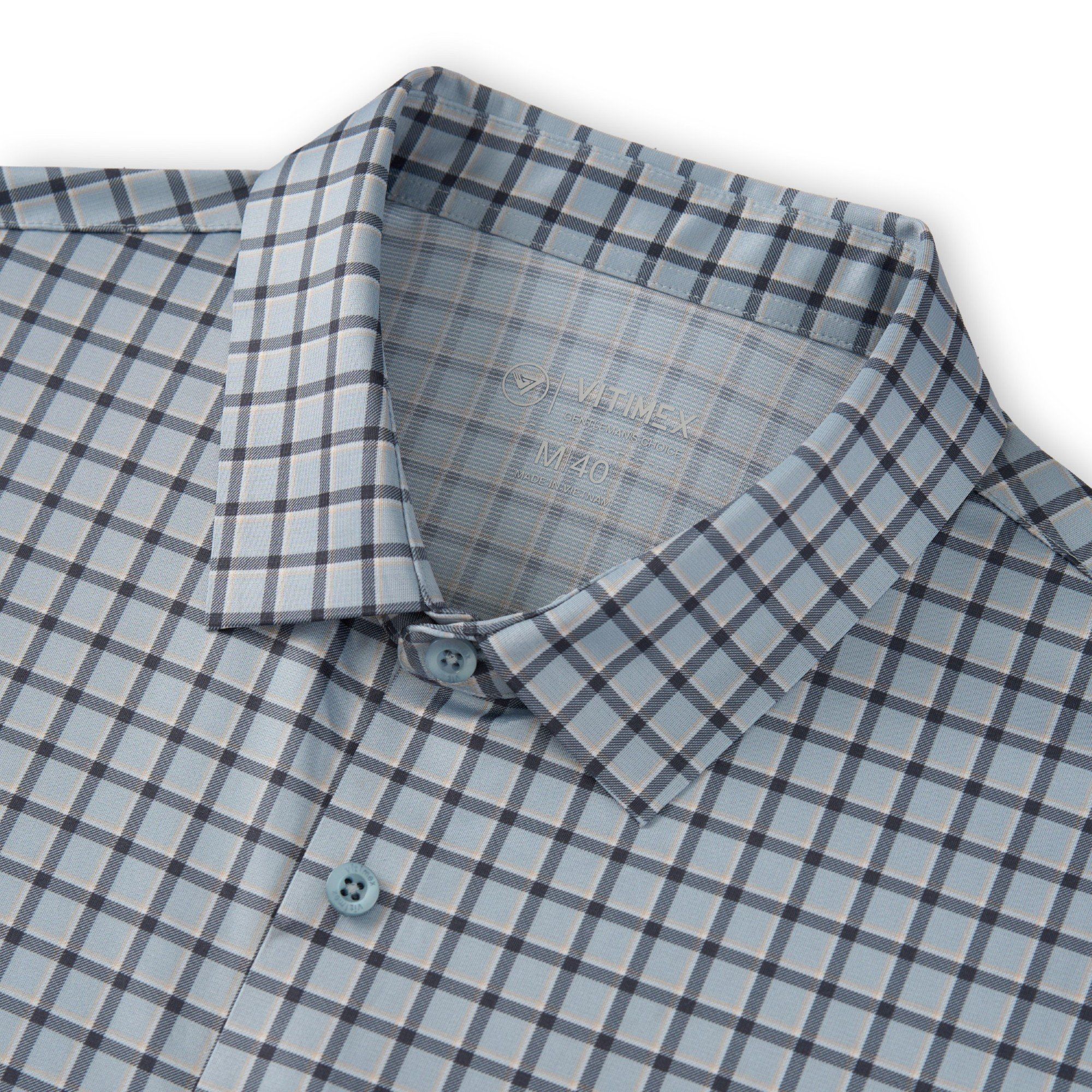 ÁO SƠ MI NGẮN TAY KHÔNG ĐỪNG MAY VITIMEX DÁNG ÔM VỪA SLIMFIT KẺ CARO ATL 5011