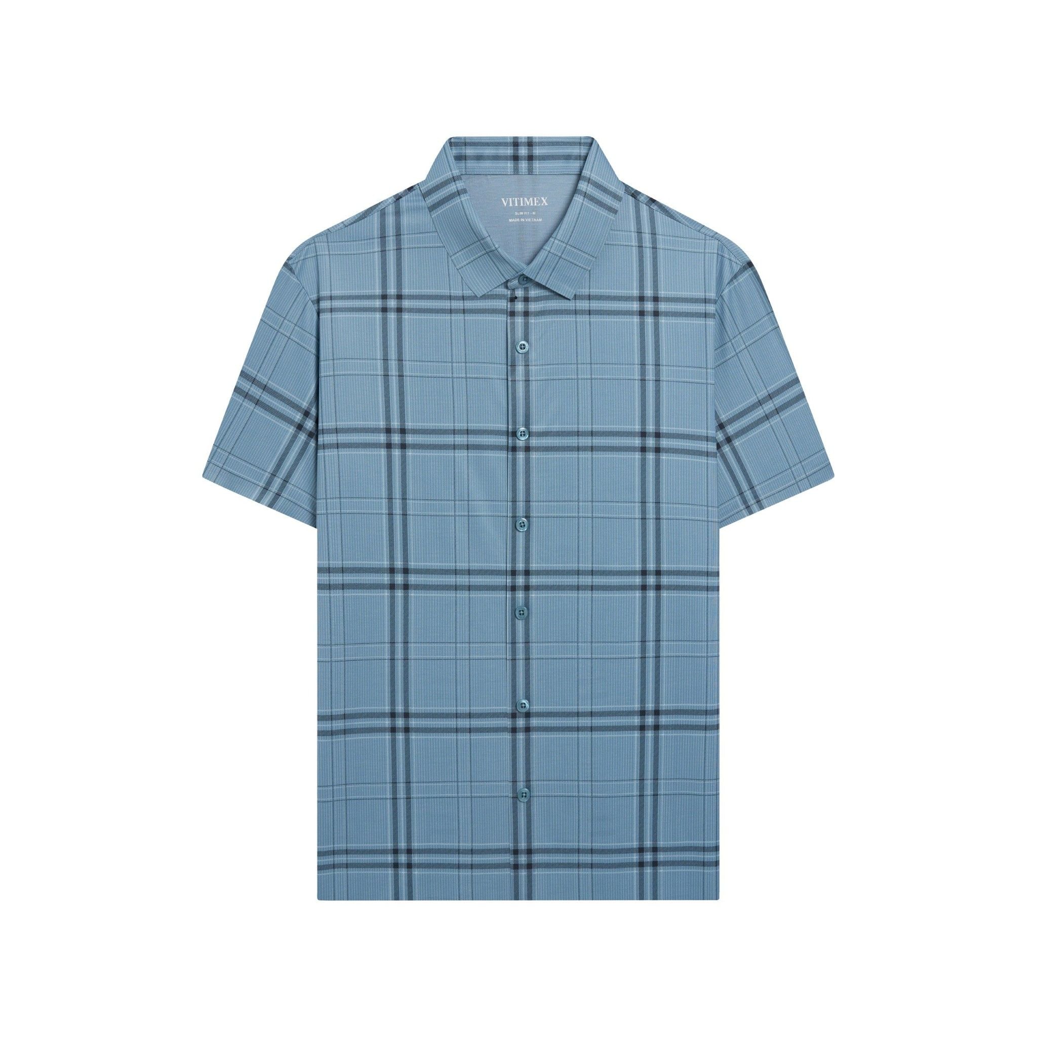 ÁO SƠ MI NGẮN TAY KHÔNG ĐỪNG MAY VITIMEX DÁNG ÔM VỪA SLIMFIT KẺ TO ATL 5004