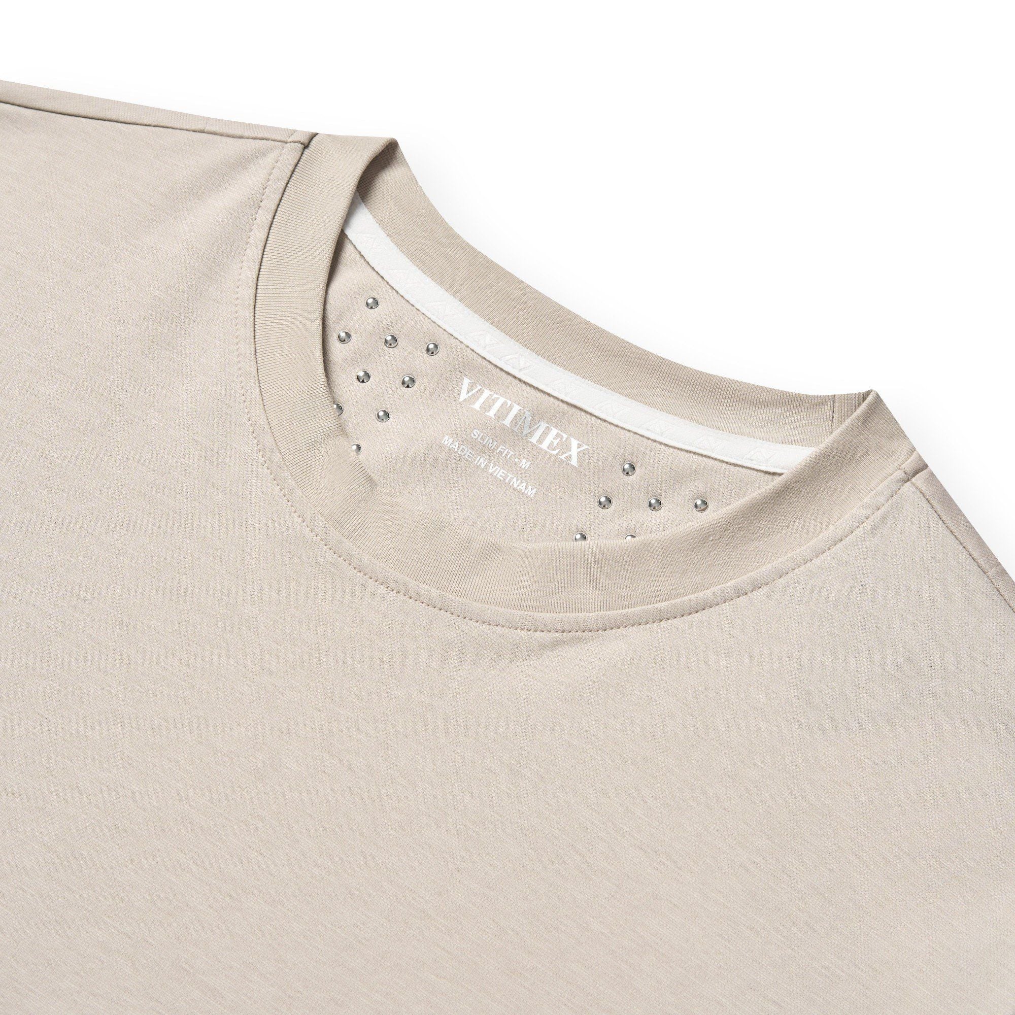 - Áo thun không cổ nam VITIMEX được làm từ chất liệu thoáng mát, phù hợp với hàng ngày.