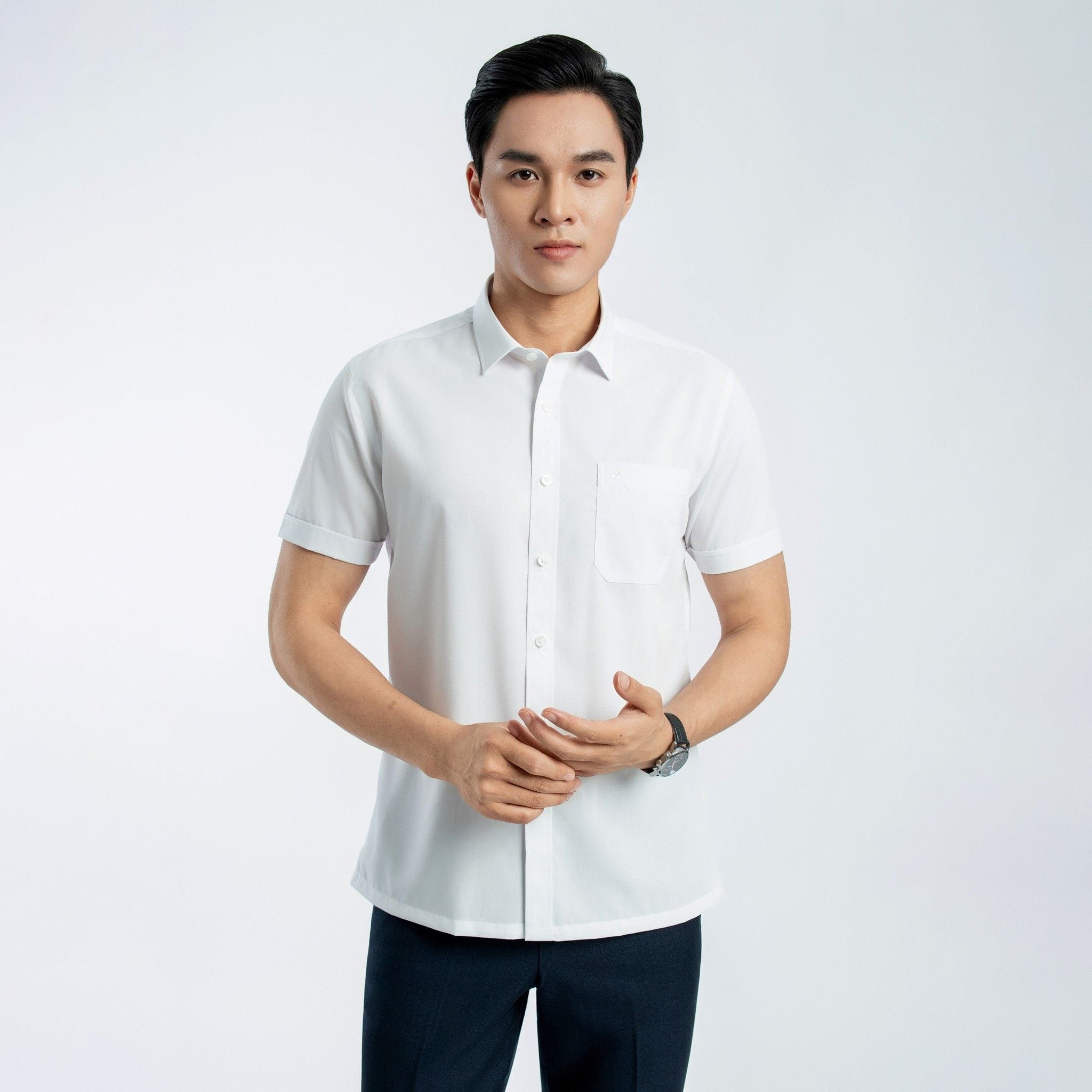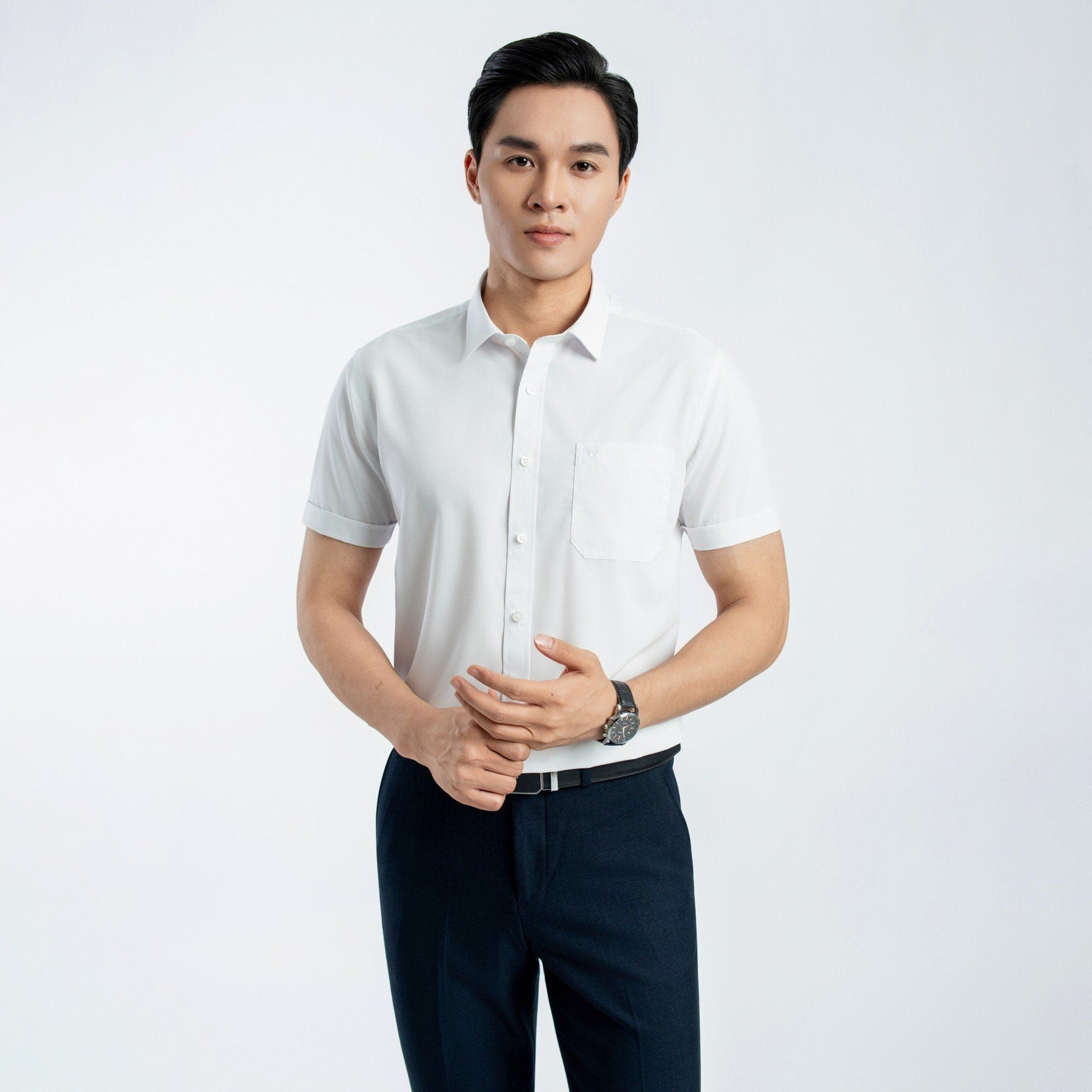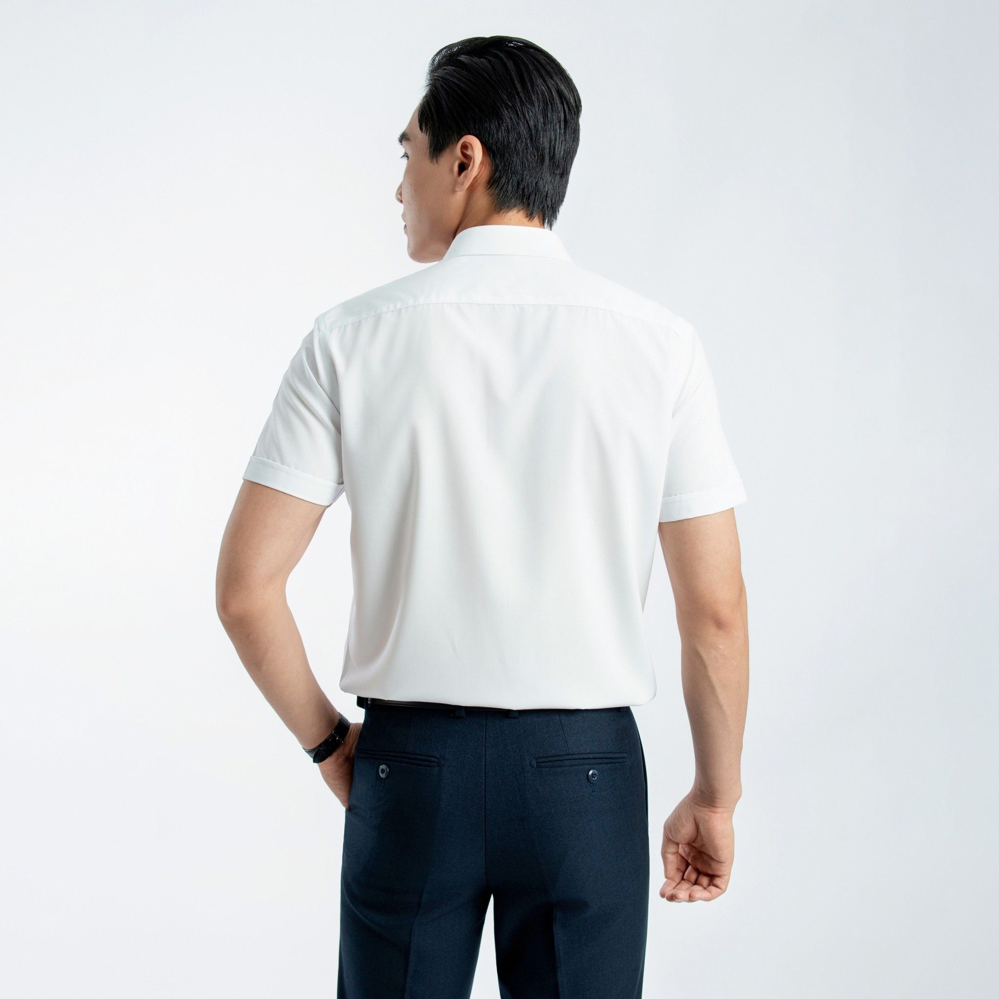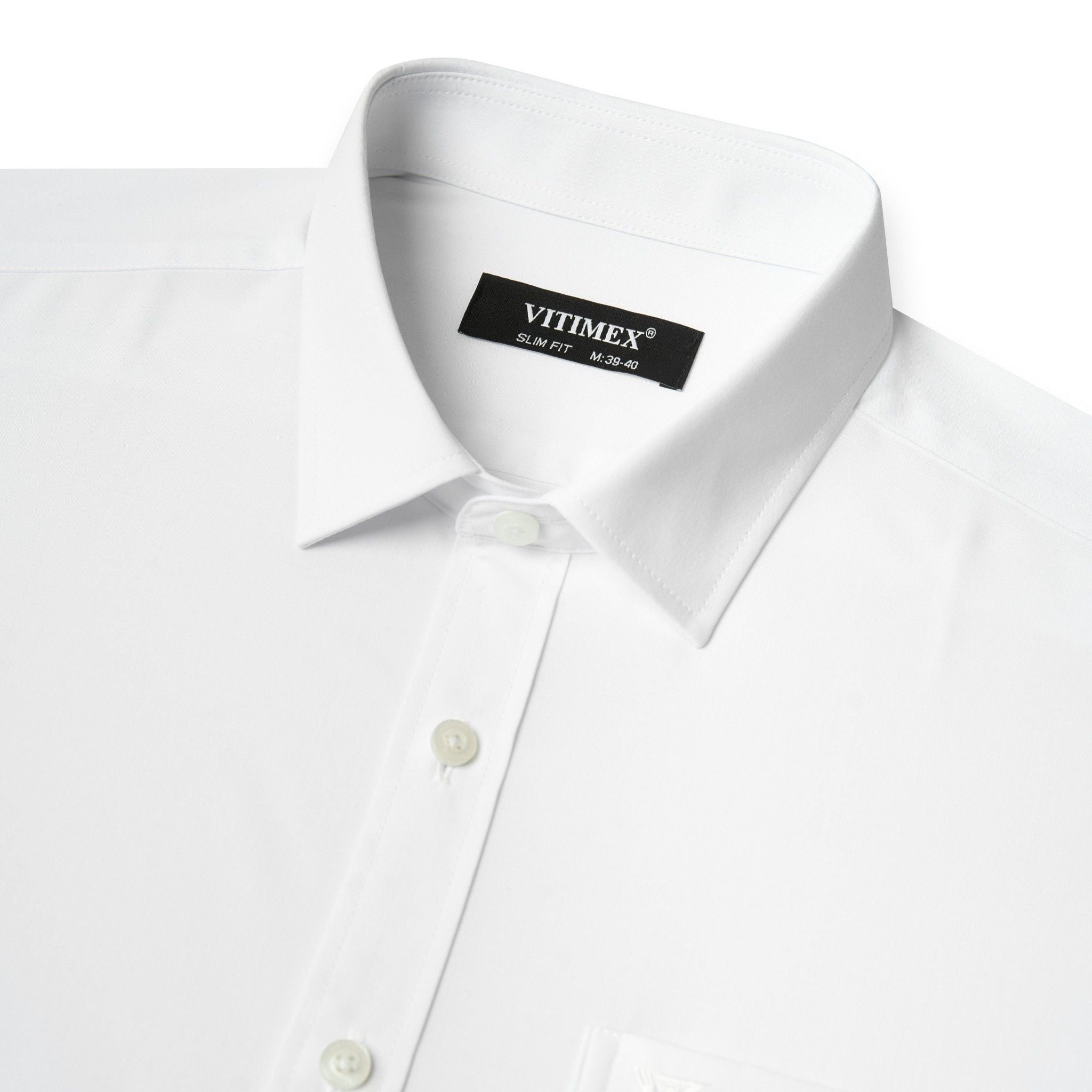 ÁO SƠ MI NGẮN TAY VITIMEX DÁNG BODYFIT TRẮNG TRƠN ASB 7684