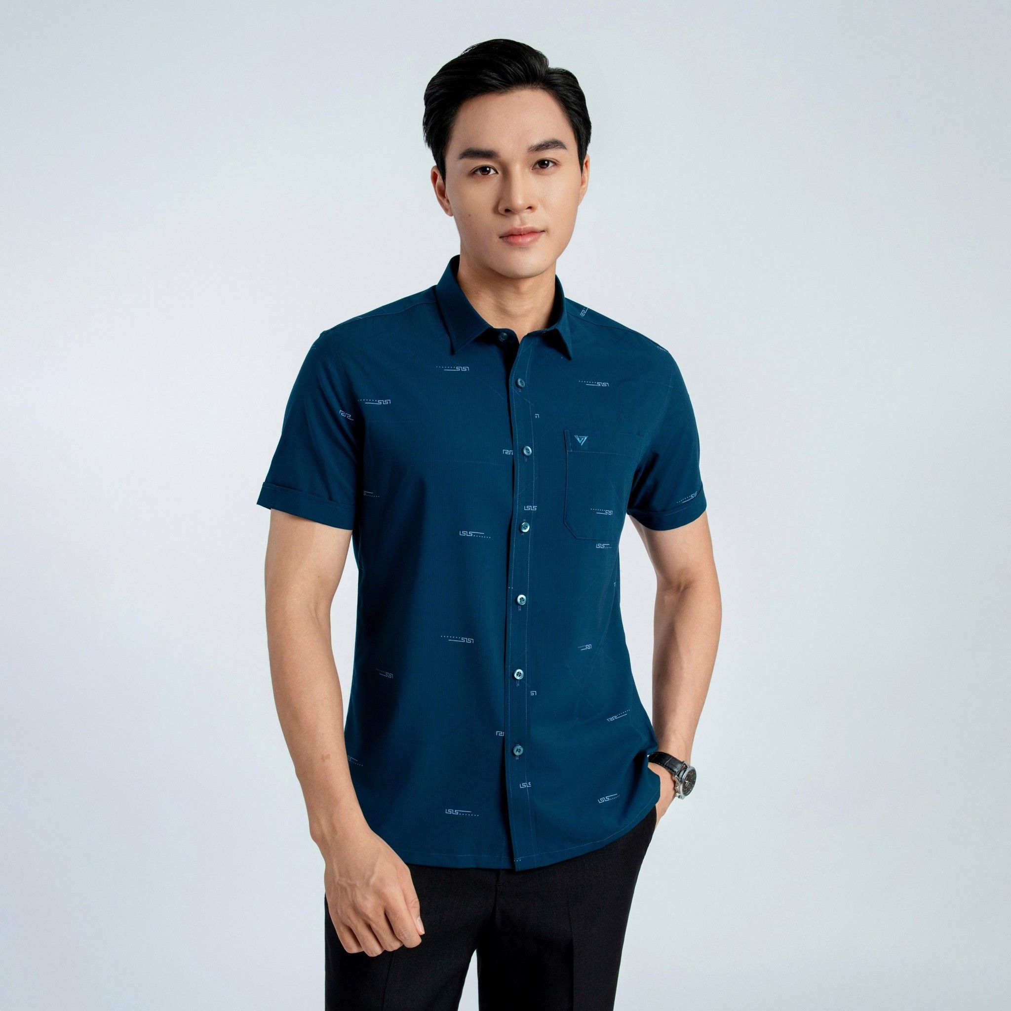 ÁO SƠ MI NGẮN TAY NAM VẠT BẰNG DÁNG ÔM VỪA SLIMFIT VITIMEX ASB 7699