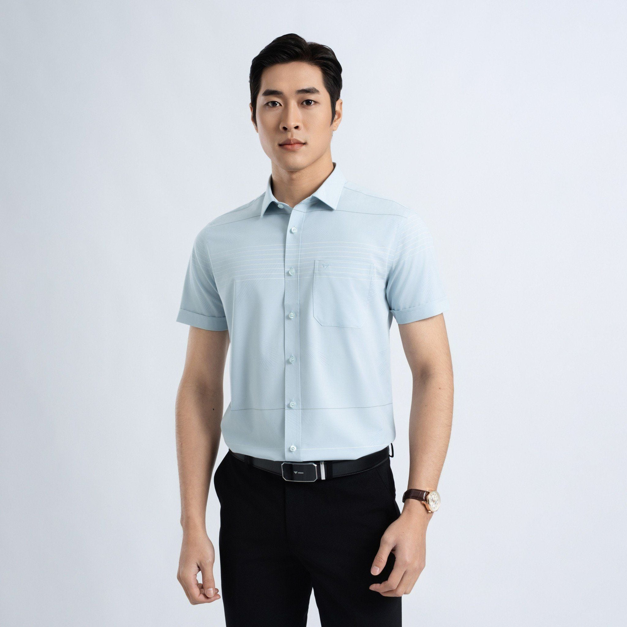 ÁO SƠ MI NGẮN TAY NAM VẠT BẰNG DÁNG ÔM VỪA SLIMFIT VITIMEX ASB 7715