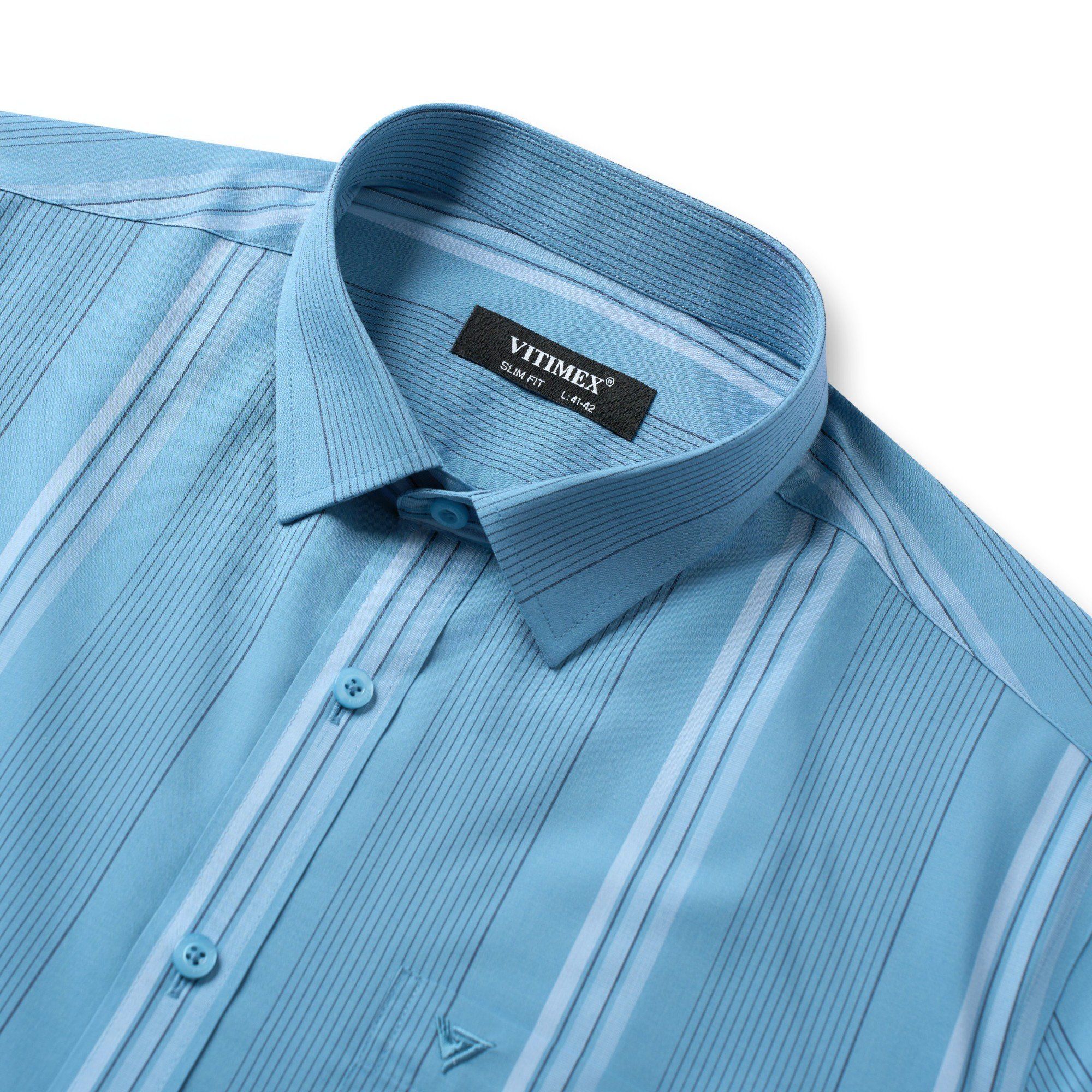 ÁO SƠ MI NGẮN TAY VITIMEX DÁNG BODYFIT KẺ SỌC ASB 7797