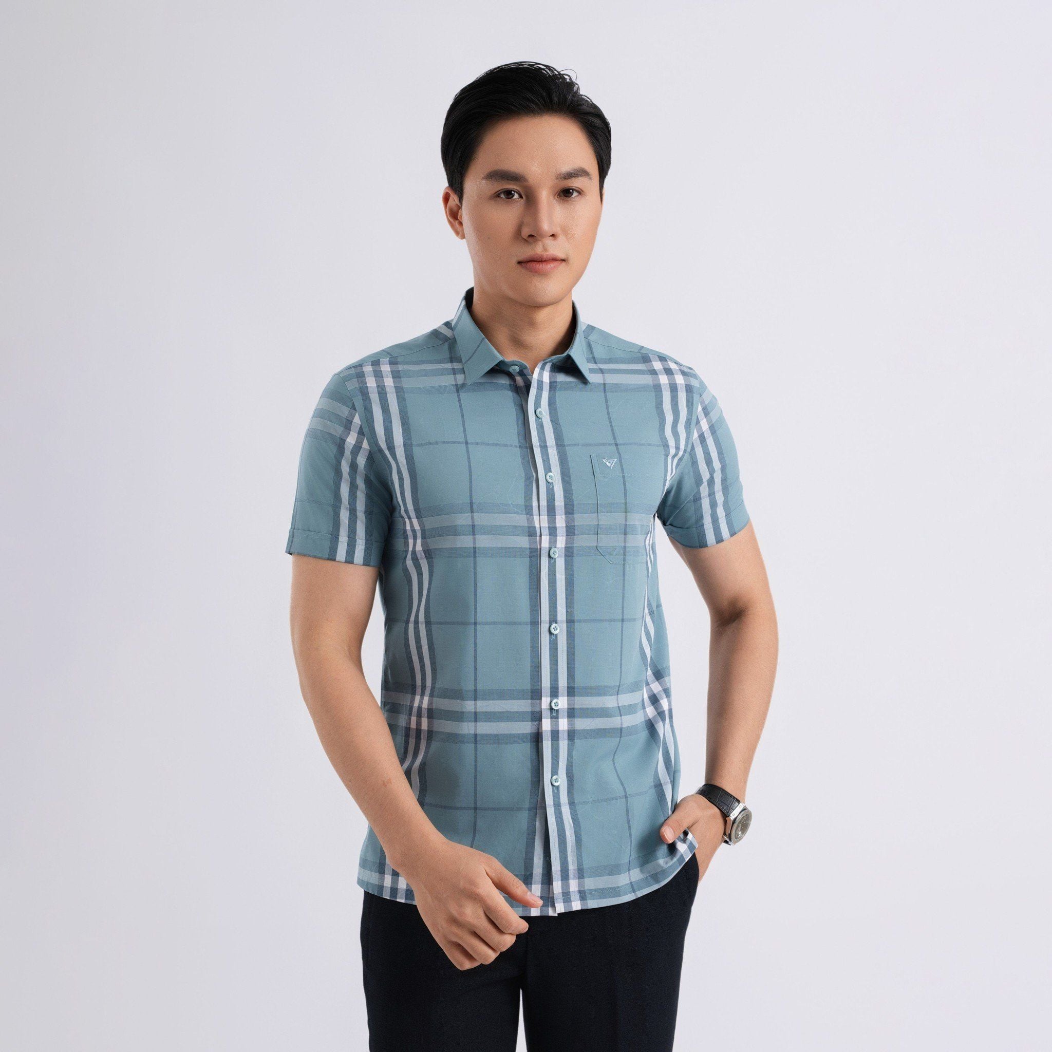ÁO SƠ MI NGẮN TAY NAM VẠT BẰNG DÁNG ÔM VỪA SLIMFIT VITIMEX ASB 7826
