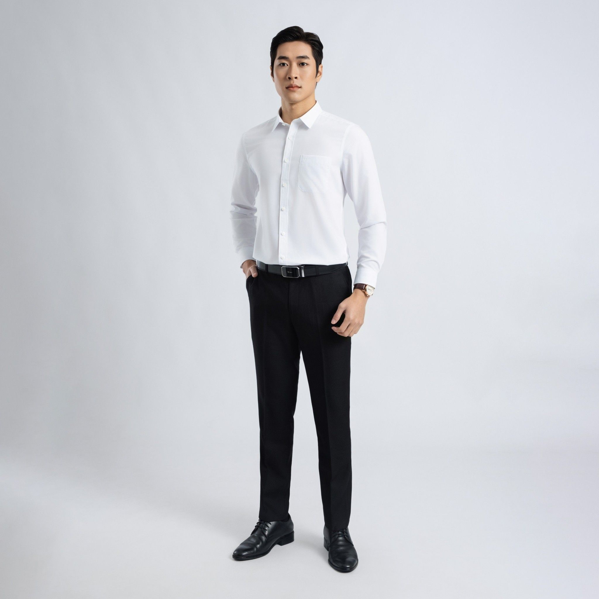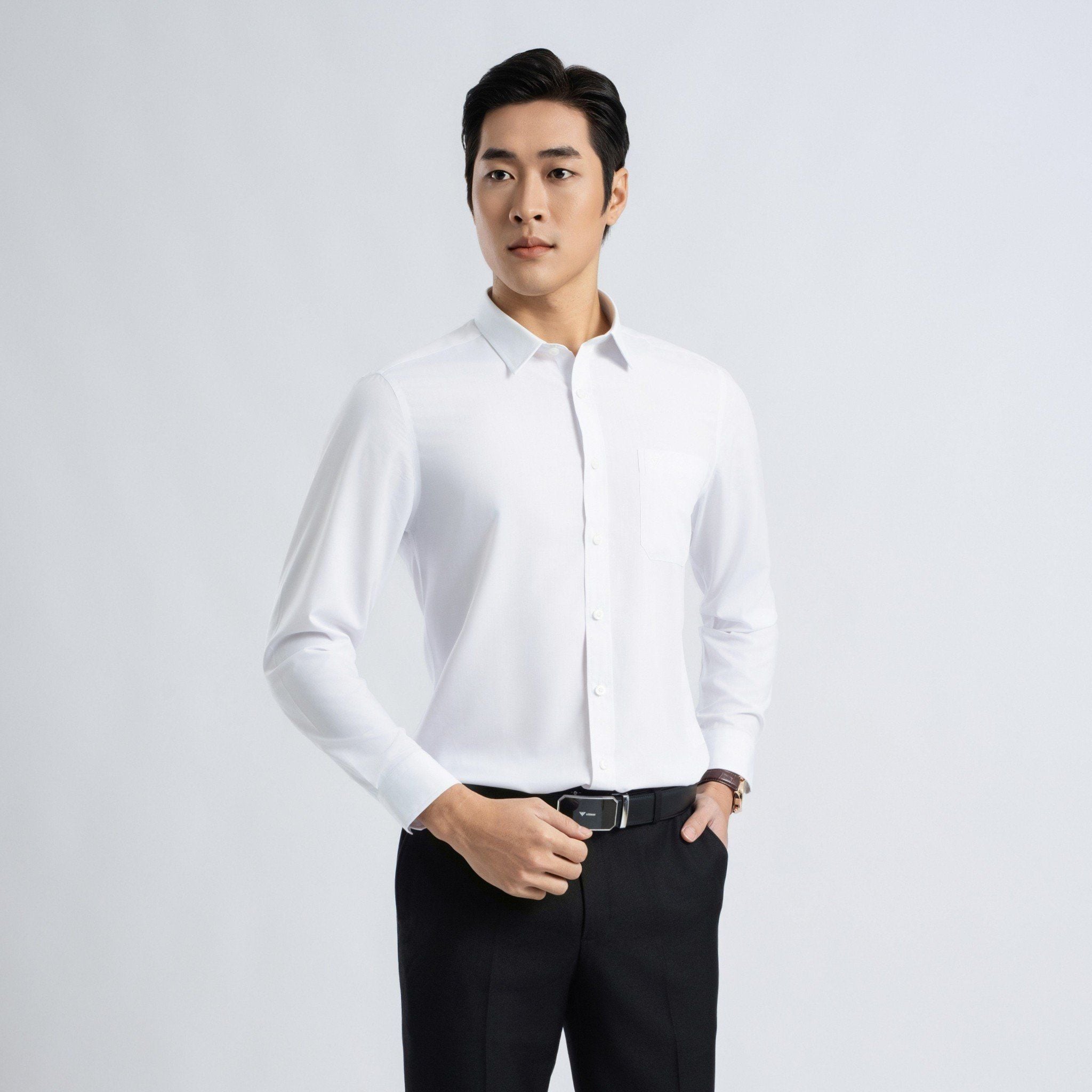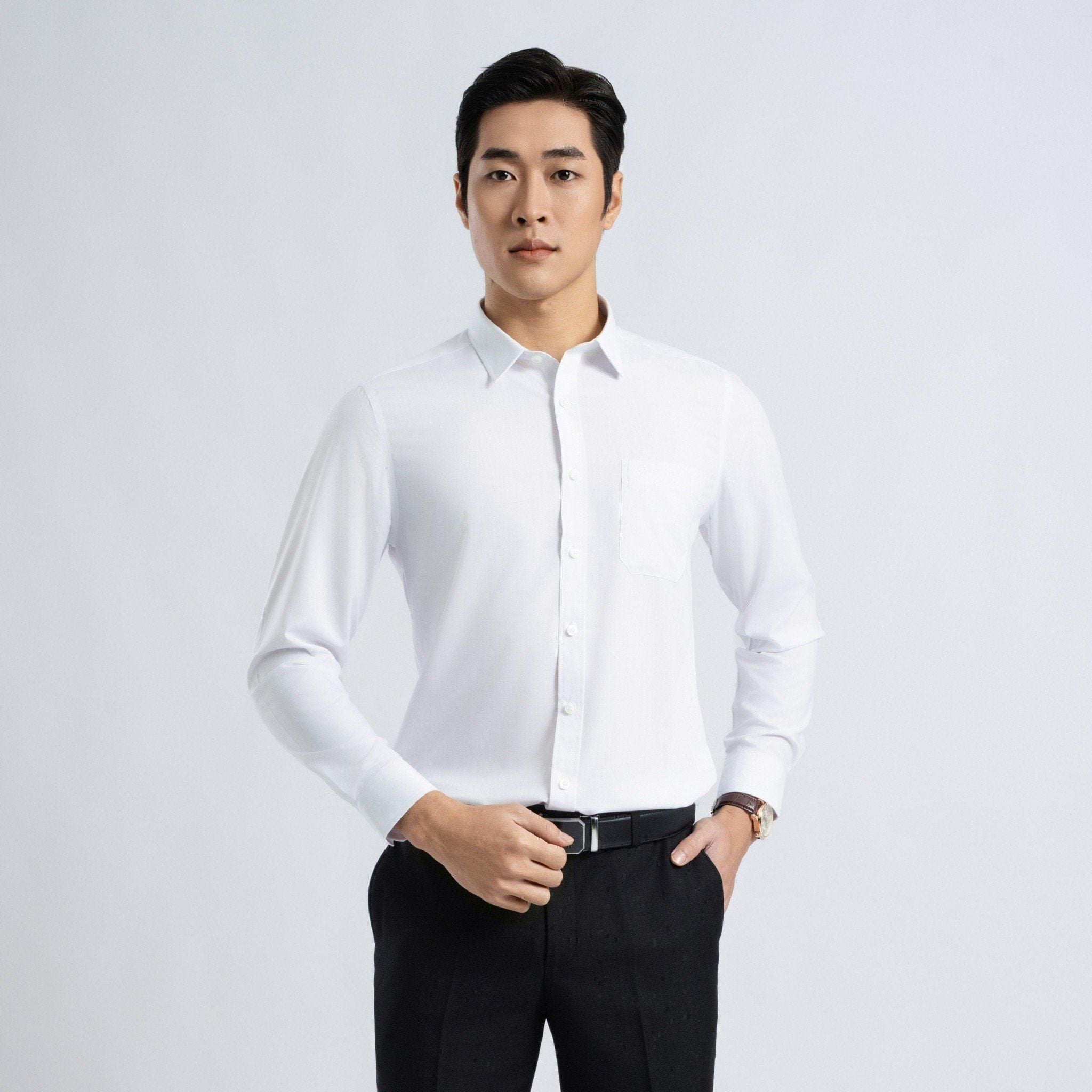 ÁO SƠ MI DÀI TAY VITIMEX DÁNG SLIMFIT TRẮNG TRƠN ASD 7684