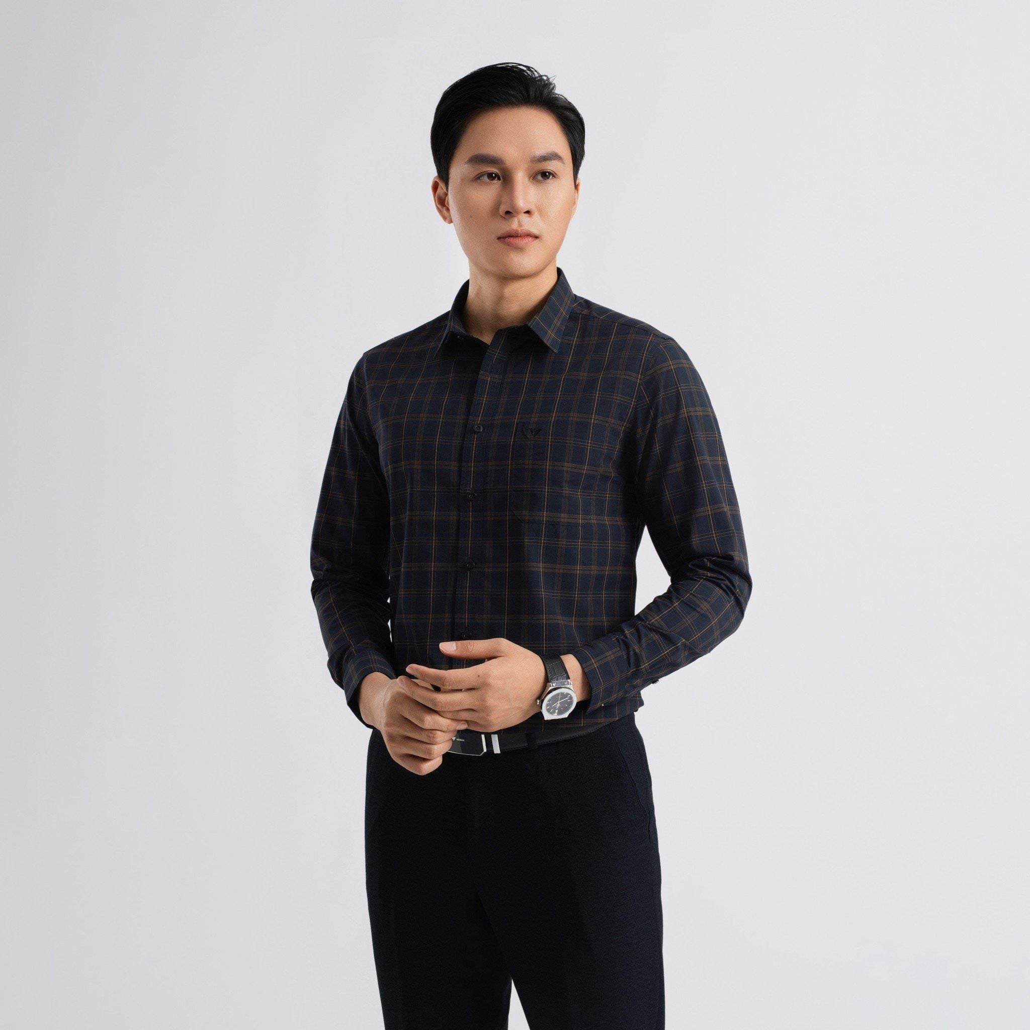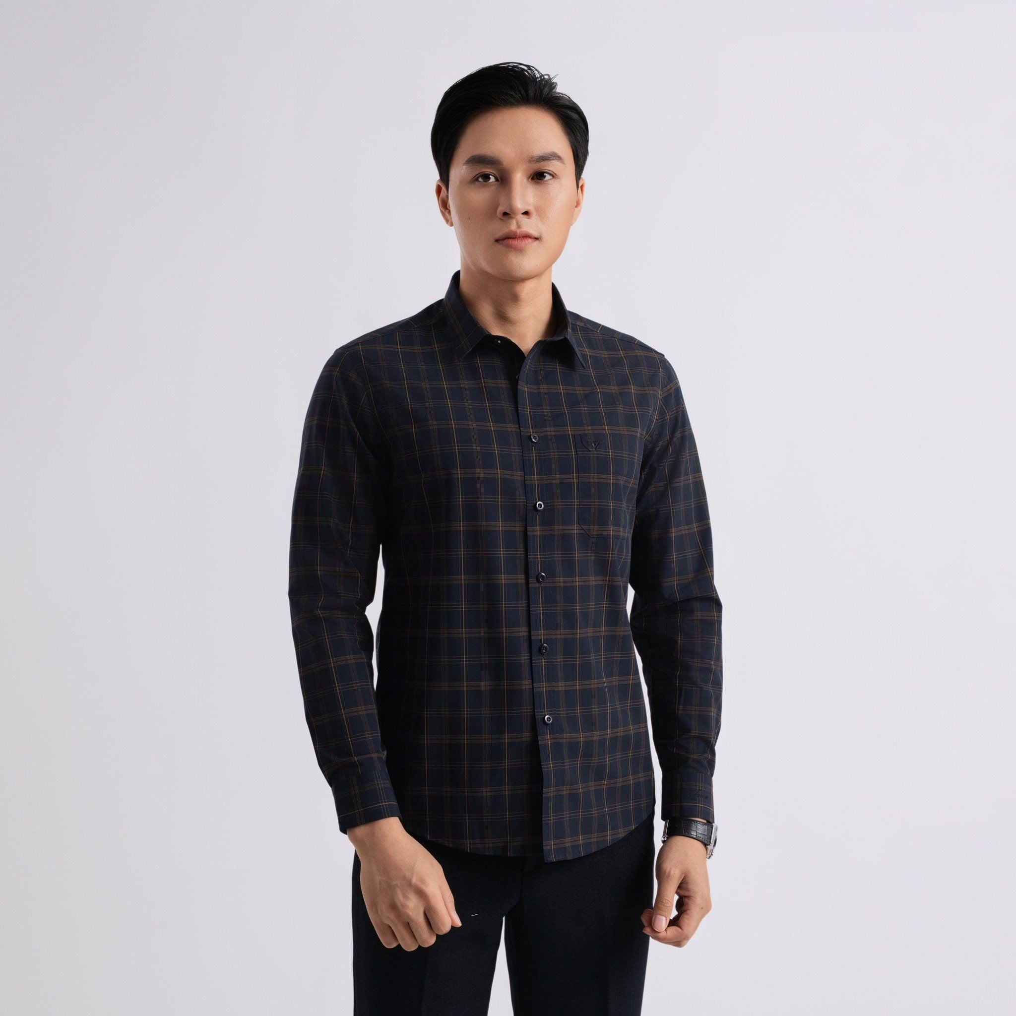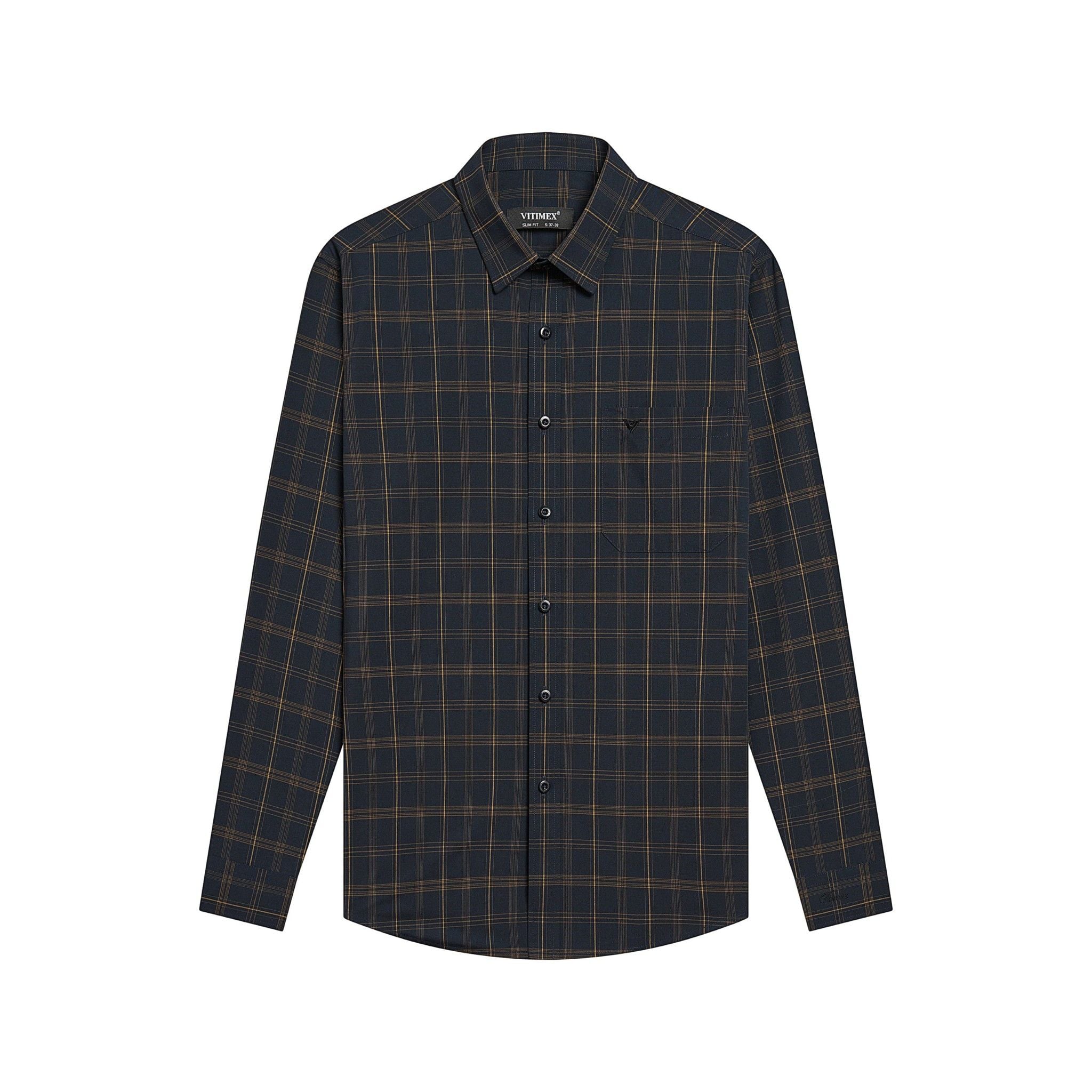ÁO SƠ MI DÀI TAY VITIMEX DÁNG SLIMFIT KẺ CARO ASD 7830